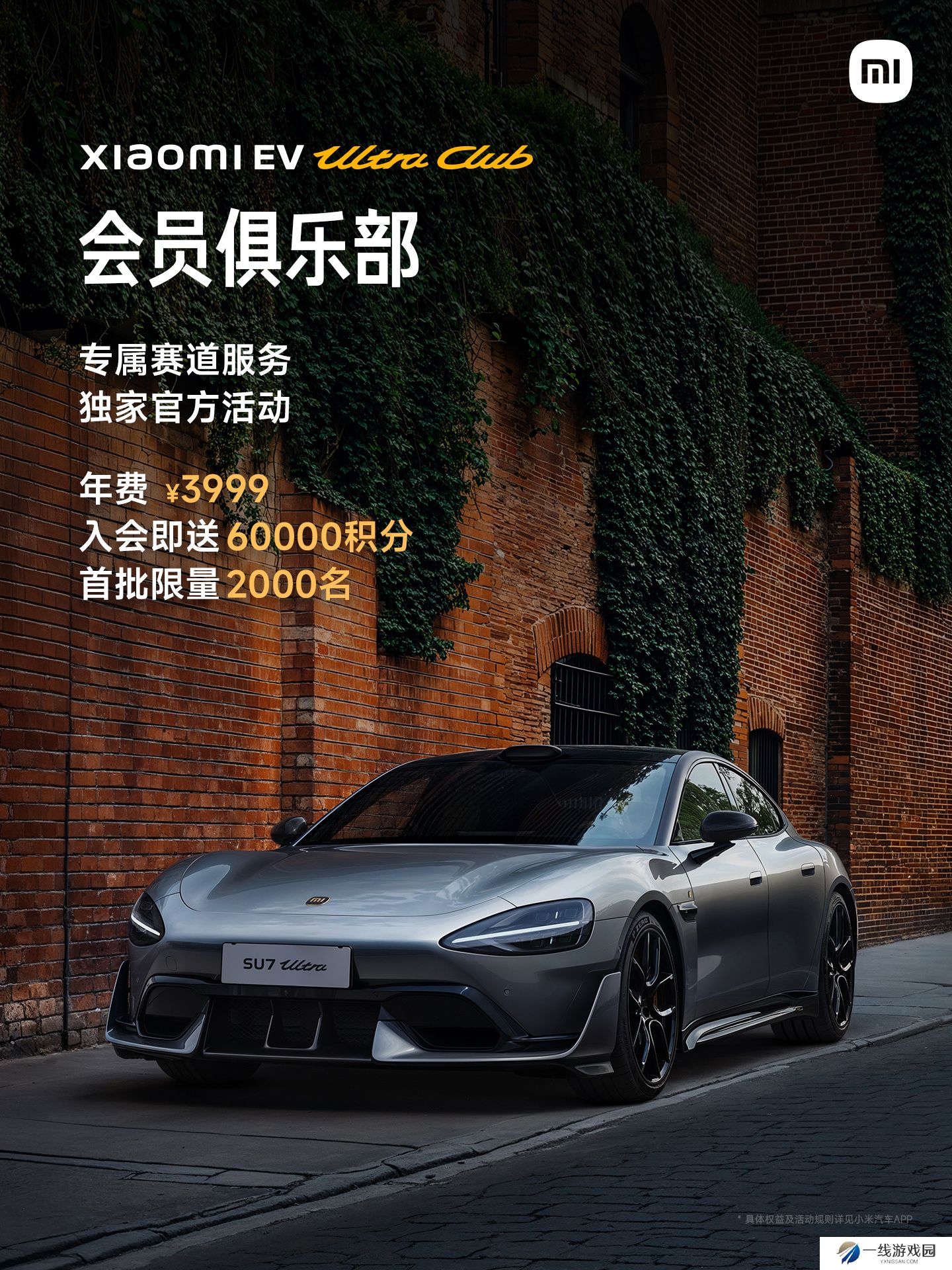 本站注意到,小米 Xiaomi EV Ultra Club会员俱乐部于 2 月 27 日成立,该俱乐部的年费为3999元,首批限量2000人,入会可享60000积分,可享受以下专属服务: