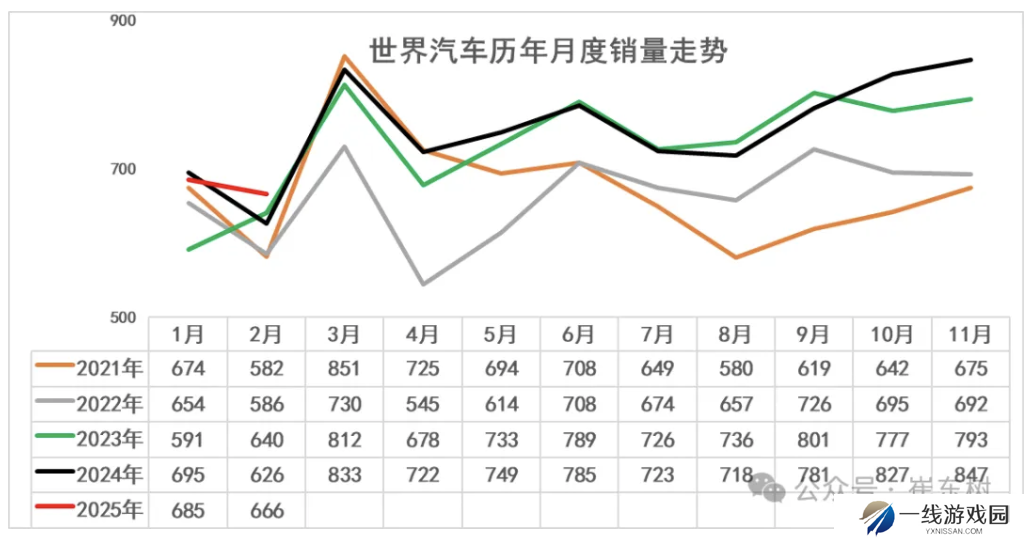 本站 3 月 29 日消息,乘联分会崔东树发文,透露 2025 年 2 月的世界汽车销量达到 666 万台,同比增 6%。